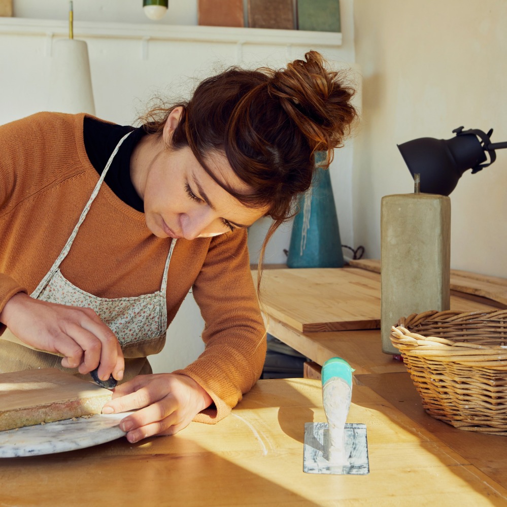 Spécialisée dans les techniques de la chaux, Melanie s'est tout particulièrement passionnée pour le Tadelakt. Tant pour sa rondeur que pour ses vertus décoratives. Elle aime rechercher des teintes subtiles et personnalisées, transmettre les techniques de la chaux et s'adonner à la création.